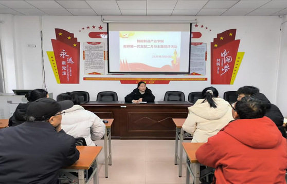 智能制造产业学院教师第一党支部在仙女湖校区B104会议室开展二月份主题党日活动,会议由教师第一党支部书记张冬霞主持,教师第一党支部全体党员参加本次会议。