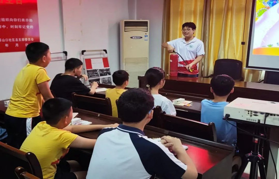 清晨八点,阳光穿透薄雾,柔和地洒在茶山口社区的每一个角落。此时,“青芒”社会实践队早已整装待发。今天,他们计划为社区里的小朋友们宣传消防安全知识。实践队队员甘浩楠详细阐述了火灾的成因、预防措施以及火灾发生时的应急处理方法,还着重讲解了如何正确使用灭火器,以及火灾中的逃生技巧,例如用湿毛巾捂住口鼻、弯腰低姿逃生等。为了让孩子们更直观地理解,他现场演示了灭火器的使用方法。在互动环节中,孩子们热情高涨,争先恐后地举手回答问题,现场气氛十分热烈。