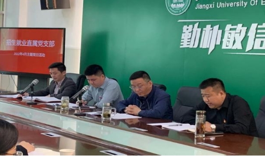 为加强基层党组织建设,充分发挥基层党支部战斗堡垒作用和党员先锋模范作用,4月13日上午,我校招生就业直属党支部根据学校党委总体部署在招生就业服务大厅开展4月主题党日活动。招生就业直属党支部书记、招生处处长谢浓,招生就业直属党支部副书记卫晓东,招生就业直属党支部纪检兼统战委员、就业处处长王长旺,招生就业直属党支部宣传委员、招生处副处长刘磊及招生就业直属党支部全体党员参加活动。活动由谢浓主持。