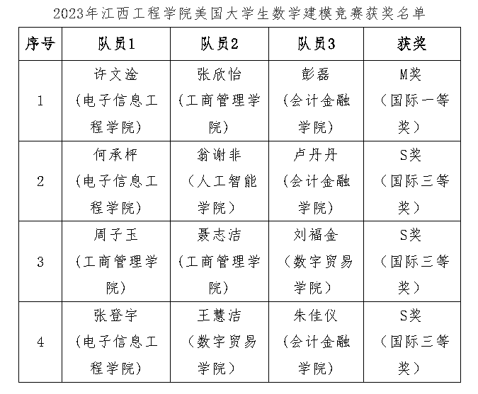 2023年美国大学生数学建模竞赛成绩公布,我校彭磊(会计金融学院)、张欣怡(工商管理学院)、许文淦(电子信息工程学院)三位同学组建的参赛队,荣获赛事的Meritorious Winner(国际一等奖),这是我校自参赛以来首次获此殊荣。美国大学生数学建模竞赛(MCM/ICM)是现今各类数学建模竞赛的鼻祖,也是世界范围内最具影响力的数学建模竞赛。自此,我校实现了已参赛的所有顶级数学建模赛事“一等奖”的大满贯。