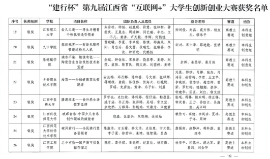 2023年11月17日,“建行杯”第九届江西省“互联网+”大学生创新创业大赛省赛获奖名单公布,我校陈哲、葛子琪、王亮辉、赵真汶、杨定海、杨爽同学的项目《芯中有数——国产高可信数据存储芯》荣获高教主赛道本科生初创组银奖,该项大赛指导老师为桂亚平、闫德林、胡志军、巢喜剑、刘金华。