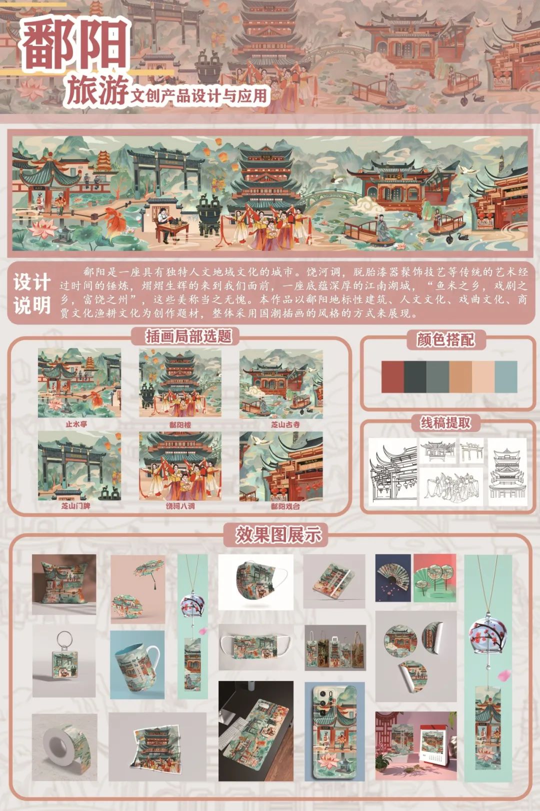 经作品初选、线上投票、专家评审会复评等流程,我校抱石艺术学院2019级视觉传达设计2班洪建同学设计的《鄱阳旅游文创产品设计与应用》在各地选拔推报的 614件作品中脱颖而出,获旅游纪念品、礼品设计类作品优秀奖。
