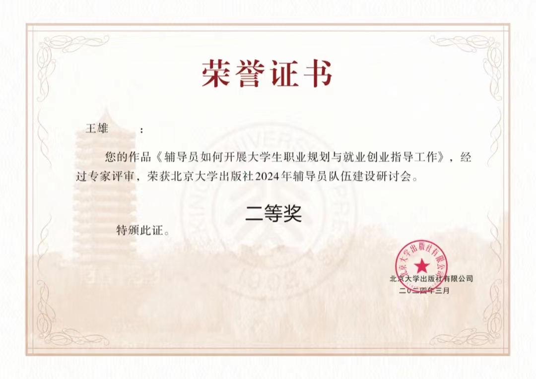 王雄表示,此次获奖不仅是对自己工作的肯定,更是对自己的鼓舞和鞭策,未来将继续努力,不断提高自己的专业素养和工作能力,为学生的成长和发展贡献更多的力量。同时,他也希望通过自己的努力和实践,为我校辅导员队伍的建设和发展做出更大的贡献。