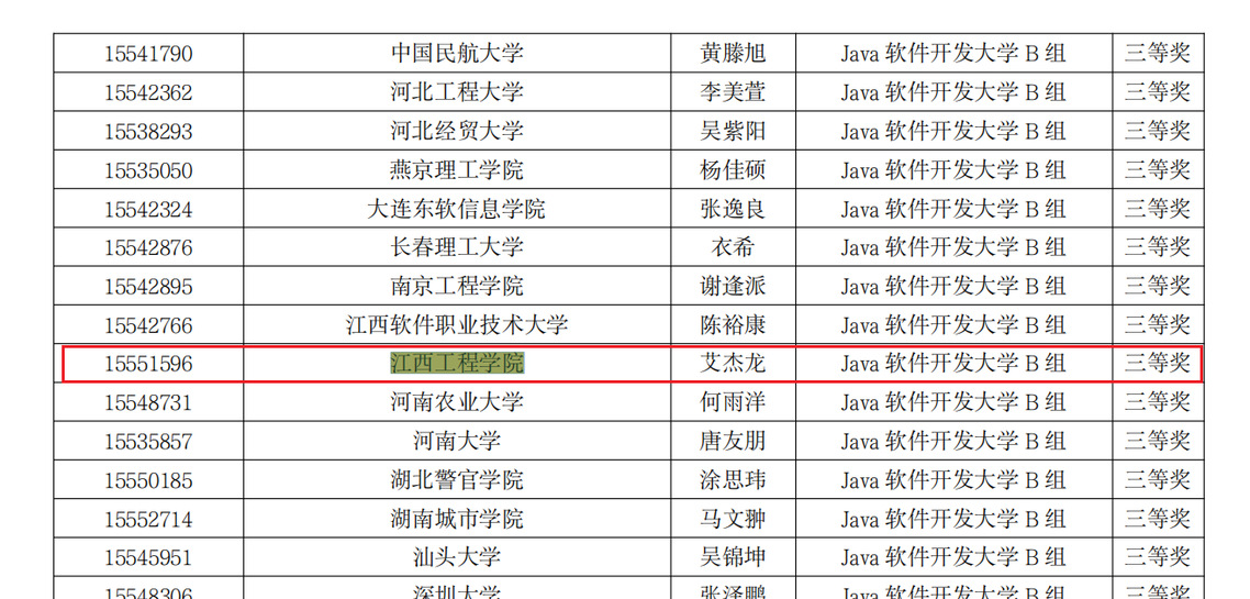 其中,艾杰龙同学在Java软件开发B组比赛中表现突出,荣获全国三等奖。他凭借对Java编程的深入理解和熟练掌握,成功解决了比赛中的多个难题,展现出了出色的编程能力和解决问题的能力。艾杰龙的优异表现不仅为学校争得了荣誉,也为自己的编程之路增添了浓墨重彩的一笔。