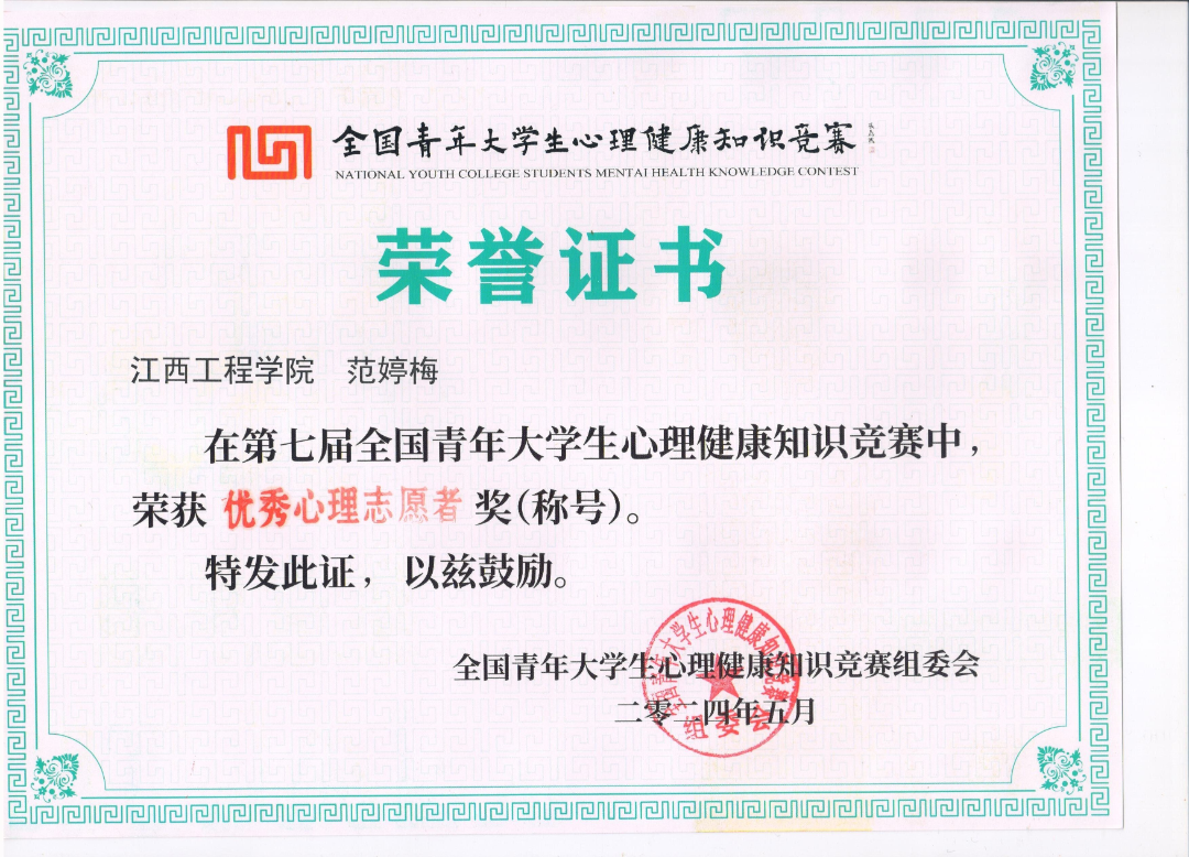 近日,由全国青年大学生心理健康知识竞赛组委会举办的第七届全国青年大学生心理健康知识竞赛于2024年5月25日圆满结束,我校学子在此次竞赛中取得佳绩。