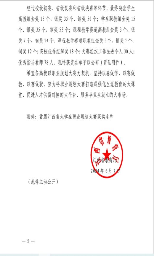 这次比赛成绩的取得是大力推进大学生生涯教育与就业指导改革的结果体现,是学校长期以来深入推进全程化职业规划教育的成果展示,又一次发出了江工就业育人和赛事文化的好声音。